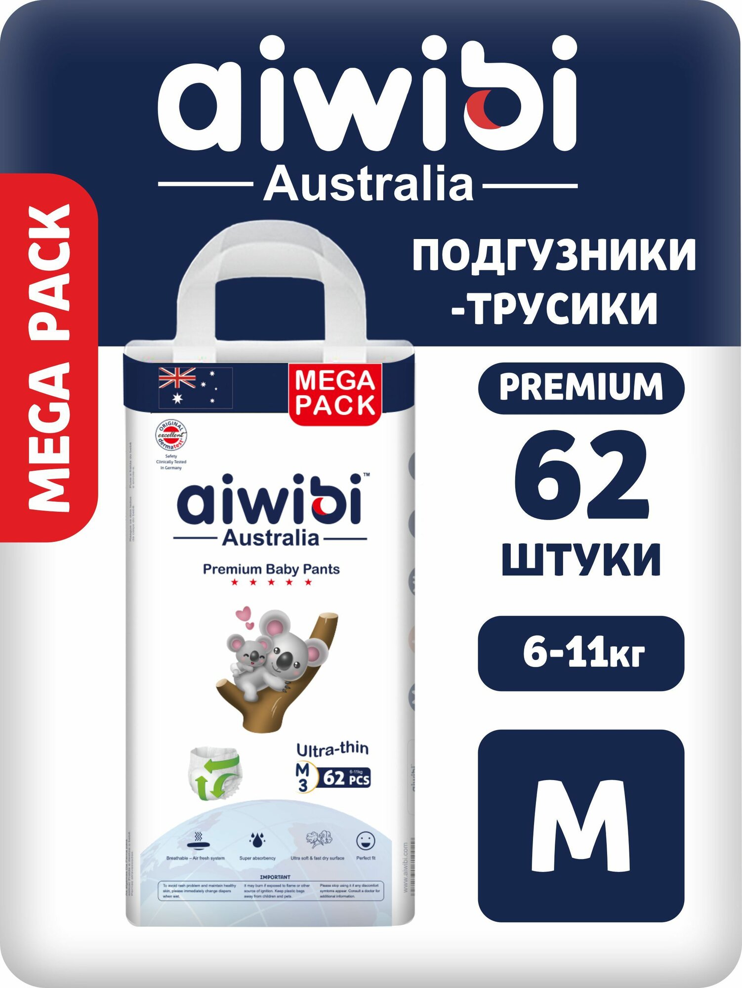 Купить Трусики-подгузники детские AIWIBI Premium M (6-11 кг) 62 шт айвиби, памперсы с доставкой по всей России.