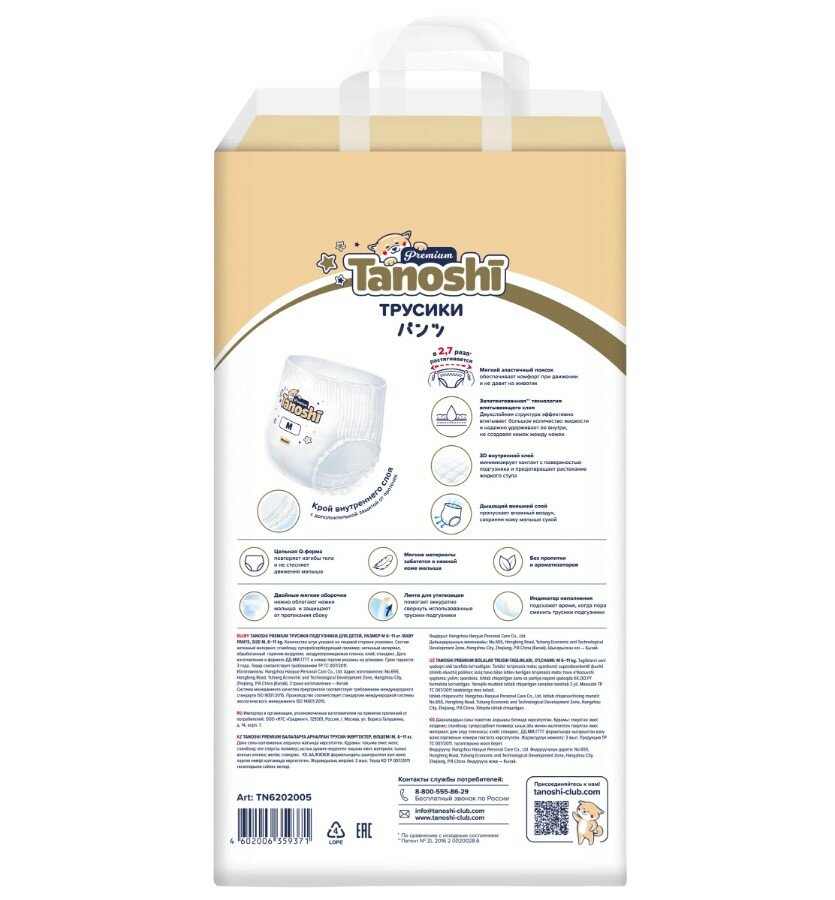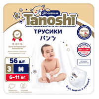 Подгузники-трусики Tanoshi Premium, размер M / 3 (6-11 кг) 56 шт, мягкие и тонкие: сравнение цен, характеристики, фото, актуальное наличие и цены.