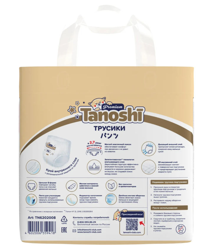 Трусики-подгузники для детей Tanoshi Premium, размер XXL >15 кг, 26 шт: сравнение цен, характеристики, фото, актуальное наличие и цены.