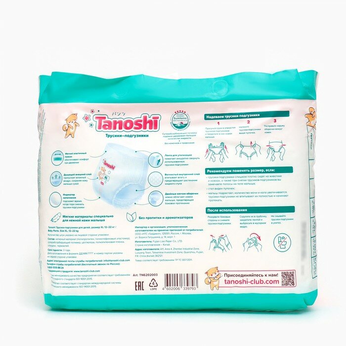 Подгузники-трусики Tanoshi XL 12-22кг N38: сравнение цен, характеристики, фото, актуальное наличие и цены.