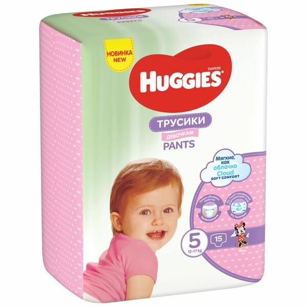 Трусики-подгузники для девочек Huggies/Хаггис р.5 12-17кг 15шт: сравнение цен, характеристики, фото, актуальное наличие и цены.