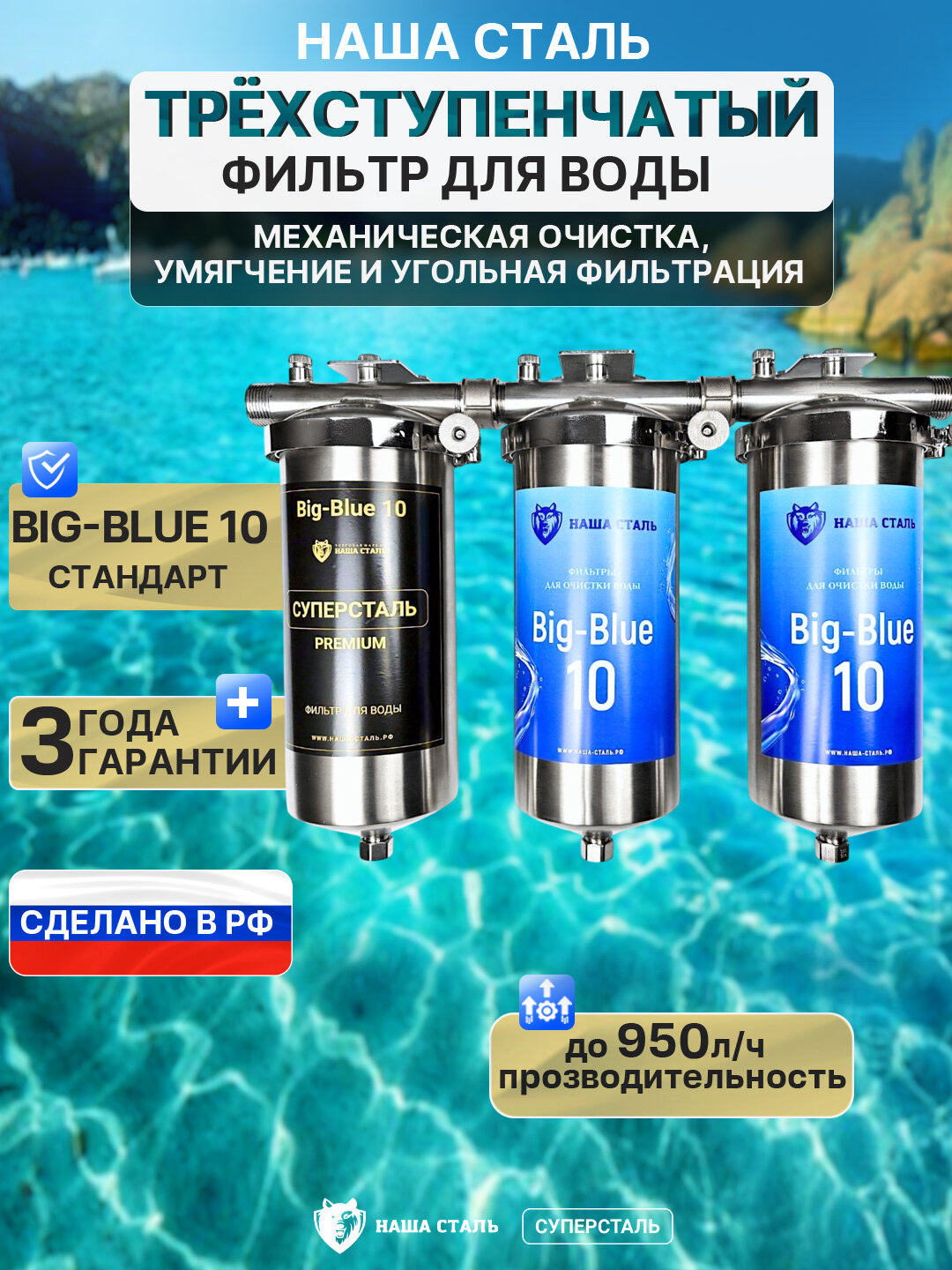 Купить Трёхступенчатый фильтр для воды Наша сталь. Стандарт BIG BLUE 10. Механическая очистка, умягчение и угольная фильтрация с доставкой по всей России. Трёхступенчатый фильтр для воды Наша сталь. Стандарт BIG BLUE 10. Механическая очистка, умягчение и угольная фильтрация: сравнение цен, характеристики, фото, актуальное наличие и цены.