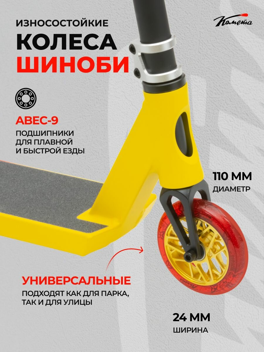 Купить Трюковой самокат двухколесный парк Комета Шиноби, (желто-красный) с доставкой по всей России. Трюковой самокат двухколесный парк Комета Шиноби, (желто-красный): сравнение цен, характеристики, фото, актуальное наличие и цены.