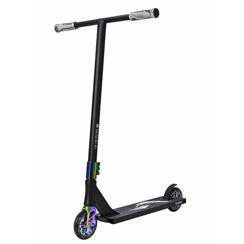 Стильная новинка для крутых райдеров! Трюковой самокат Yezz STUNTMAN – это комплит профессионального уровня по доступной цене. Он идеально подойдет тем, кто уже освоил базовые трюки и хочет совершенствовать навыки самокатного спорта. Легкий и функциональный Yezz STUNTMAN – отличный вариант для уличной езды, парка и рампы. Модель имеет усовершенствованную алюминиевую деку длиной 52 см. и шириной 12 см, что повышает трюковые возможности самоката. Мягкие двуцветные грипсы из резины TPE отлично гасят удары и вибрацию во время езды и препятствуют скольжению ладоней по ручкам руля. Цельнолитые 120-миллиметровые колеса с подшипниками ABEC9 обеспечивают безупречную маневренность во время выполнения трюков. Усовершенствованная форма заднего дропаутаа также прямоугольный профиль рамы позволяет дополнительно устанавливать пеги. А оригинальный дизайн данной модели с рисунком под декой не оставит равнодушным ни одного райдера! Модель подходит для возраста от 8 лет и рассчитана на вес до 100 кг.