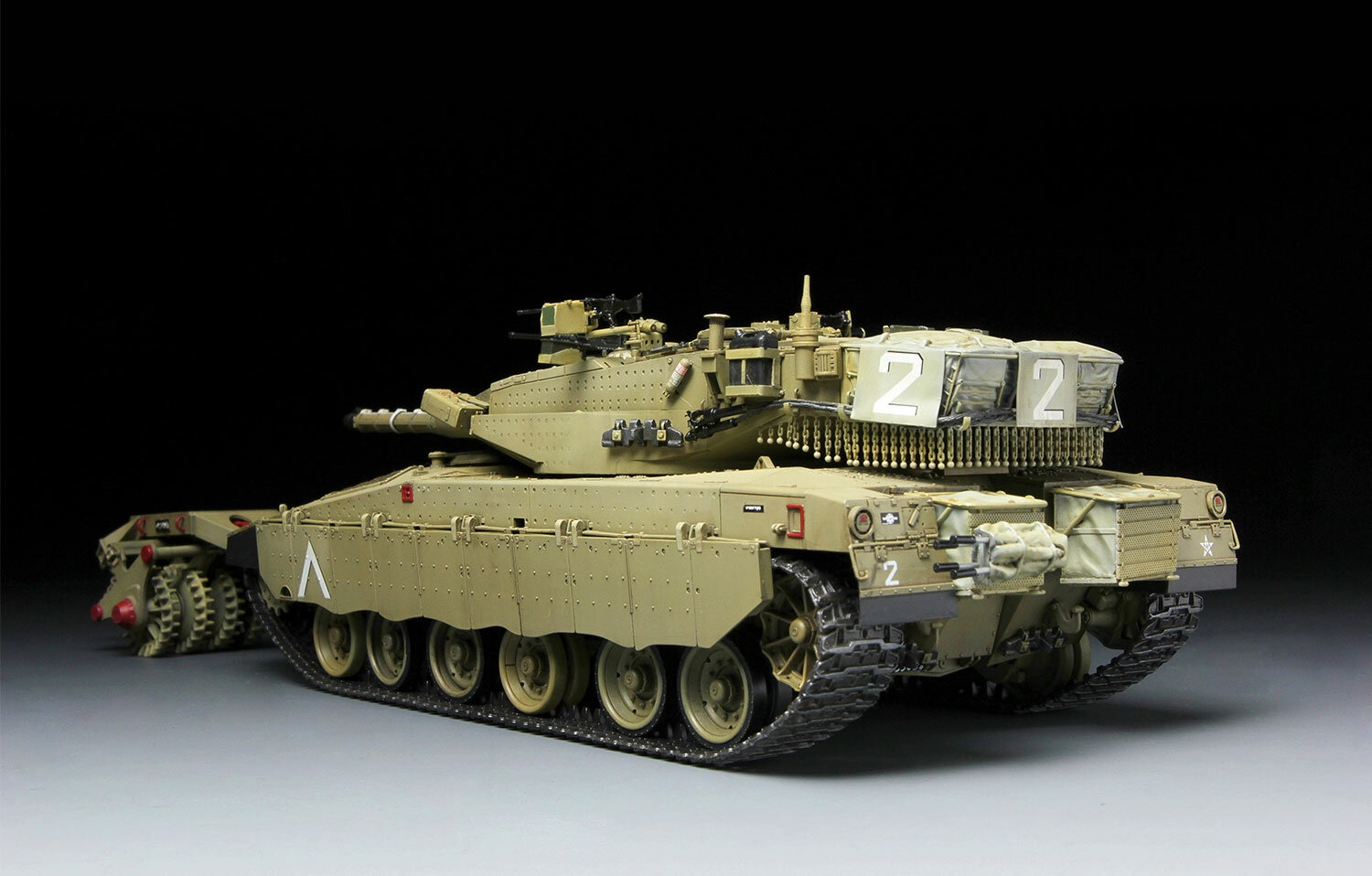 длина танка 268 мм; в комплекте резиновые и стальные колеса, корзины могут быть собраны пустыми или полными, в комплект входят отдельные боковые юбки, прецизионные детали рабочих катков минного трала Nochri Dalet, предусмотрены две схемы окраски