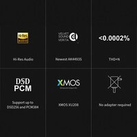 Поддерживаемые частоты дискретизации: PCM до 32 бит 384 кГц/Native DSD до DSD256/DSD DoP до DSD128 Параметры ЦАП (USB-вход @ 44.1 кГц) THD+N @ 1 кГц, A-взвешенный: 0.0002%