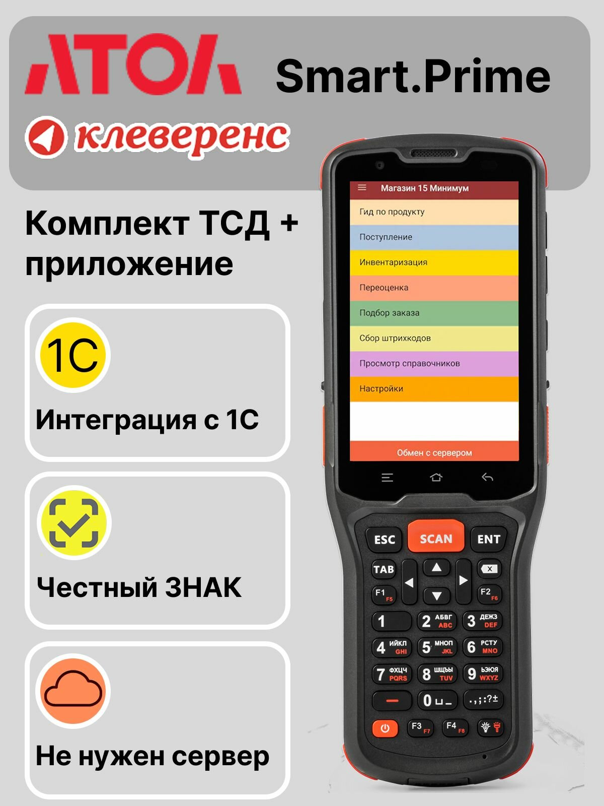 Купить ТСД АТОЛ Smart.Prime базовый с Клеверенс для 1С и маркировки, терминал сбора данных с доставкой по всей России. ТСД АТОЛ Smart.Prime базовый с Клеверенс для 1С и маркировки, терминал сбора данных: сравнение цен, характеристики, фото, актуальное наличие и цены.