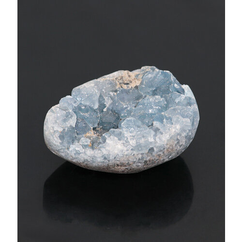 Друза-жеода натурального целестина. Целестин создает вокруг своего владельца атмосферу доброжелательности и радости. Это хороший инструмент для медитации. Ежедневный контакт с камнем привлекает позитивную энергию духов, но, она лишь подвластна доброму, справедливому человеку. Его положительное действие отражается на высокой умственной активности, помогающей раскрыть творческий потенциал и разбудить скрытые таланты. Мужчинам он дарит уверенность в себе, а женщинам — привлекательность. Каждая друза уникальна, но идентична представленным на фотографиях.