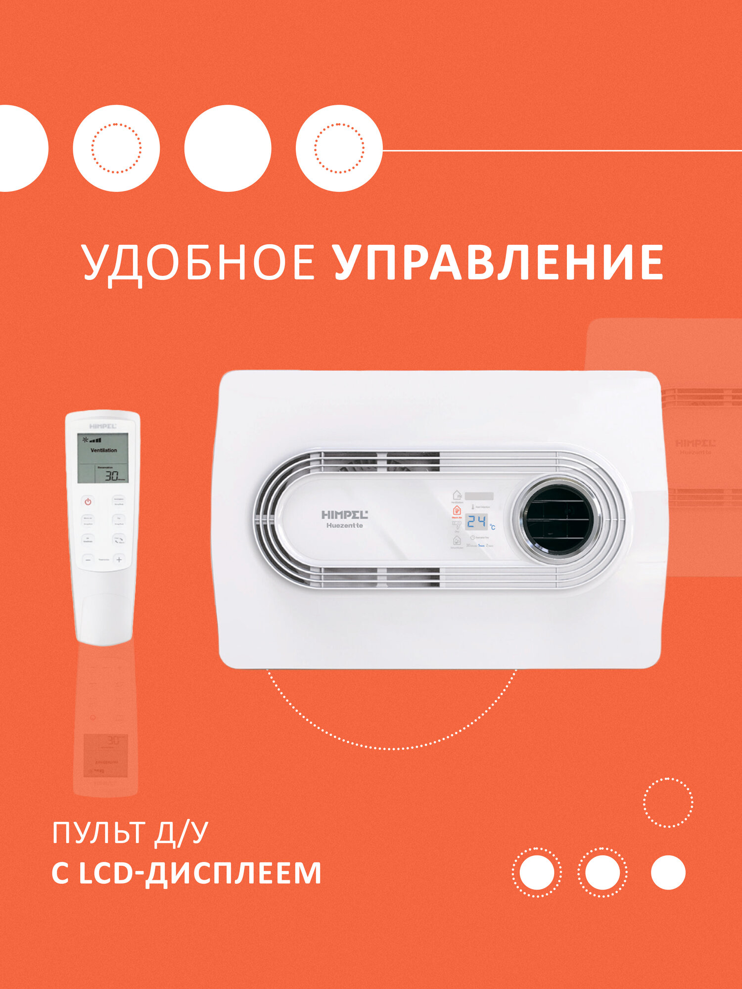 Регулируемый объем воздуха (80 - 150 м. куб/час) Осушение воздуха (удаление лишней влажности) Подогрев воздуха в ванной комнате. Сушка волос и тела (функция "фен") 3-х ступенчатая система безопасности Пульт дистанционного управления с LCD-дисплеем Обратный клапан высокой плотности. Индикатор режима работы и температуры