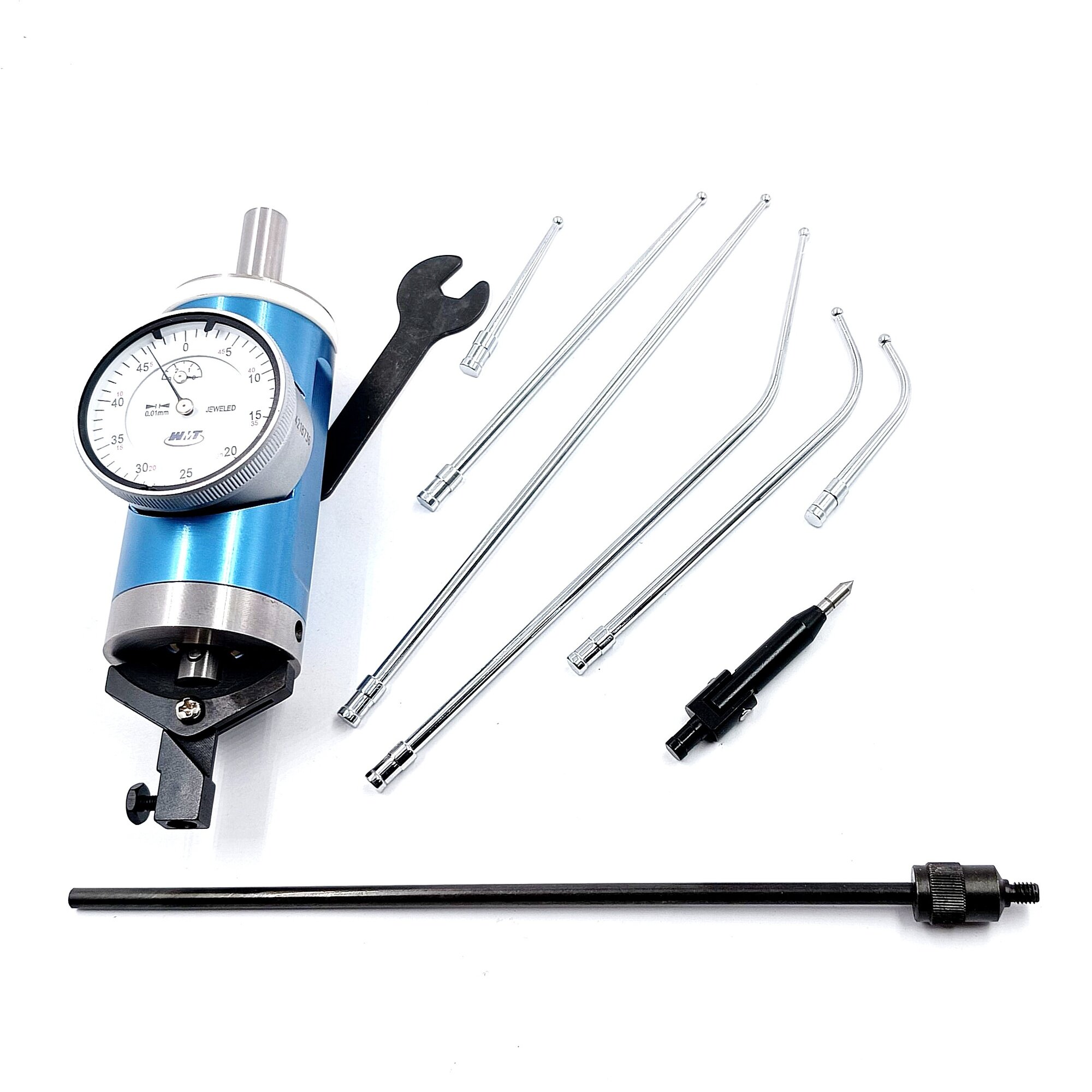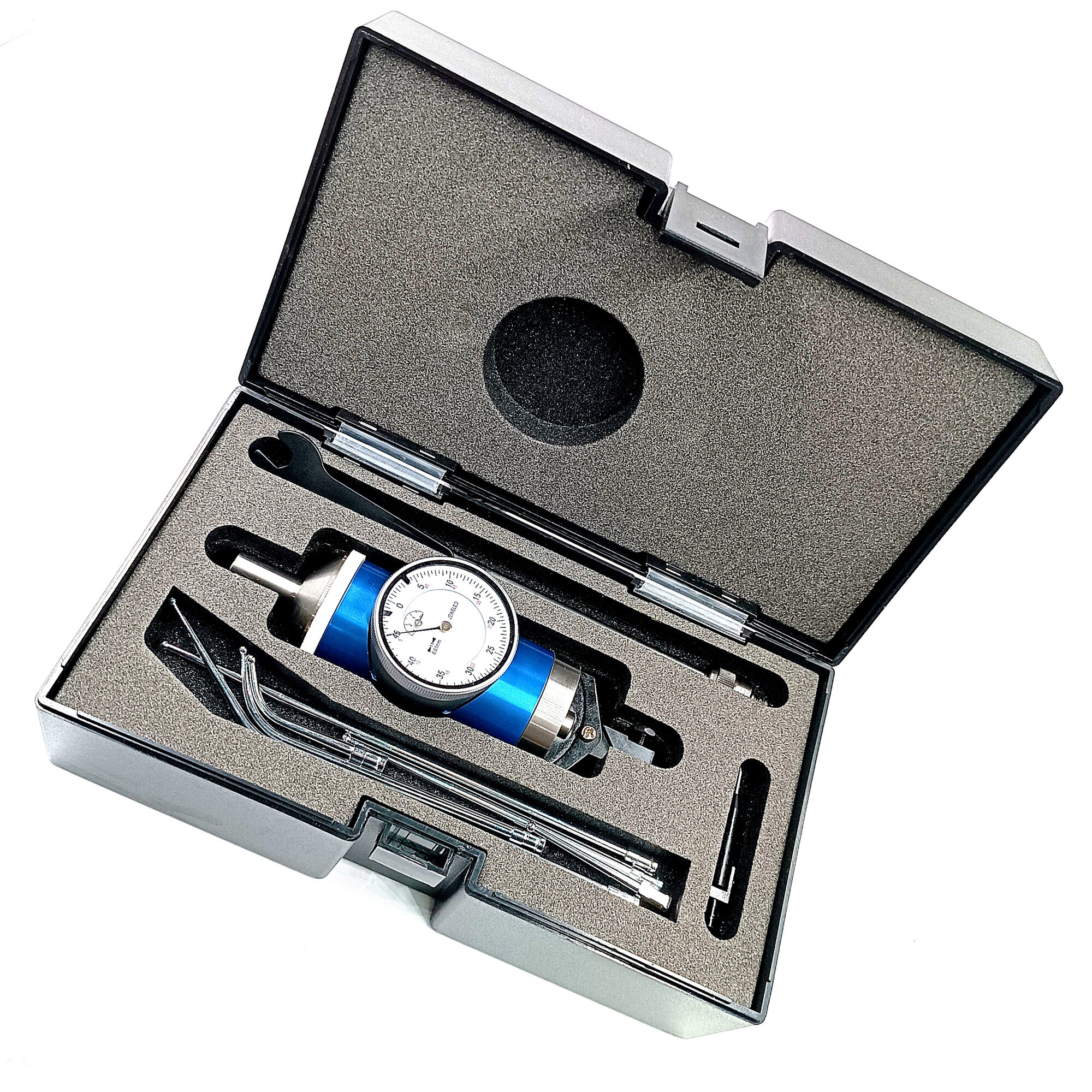 Все упаковано в деревянной коробке. В комплекте 7 сменных щупов, штанга крепления, ключ. Дискретность 0,01 мм, ход 3 мм. Возможность обкатывать как внутренние, так и наружные размеры. Возможность удерживать (или в упор) индикатор лицом к себе для комфортной работы. Не требует длительной утомительной настройки. Лапка для щупа поворачивается на 45гр. Нахождение центра отверстия от 0,1 до 150 мм. со стандартным щупом. Хвостовик для крепления ф 10 мм.
