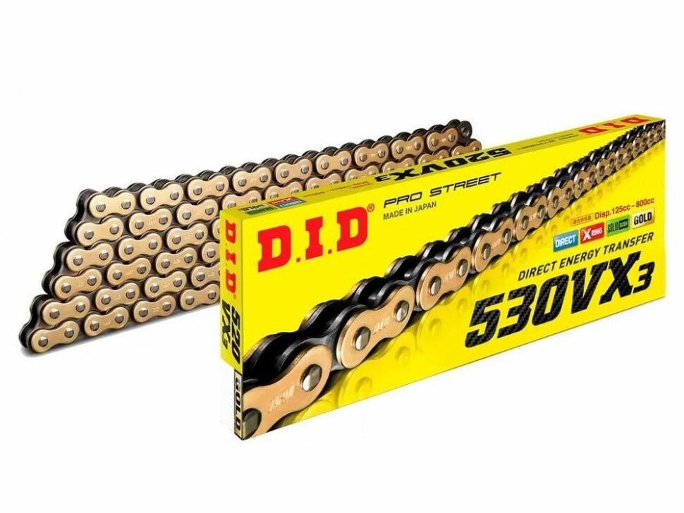 Купить Цепь DID 530 VX3 Gold-Black X-Ring золотая 102 (замок-заклепка) с доставкой по всей России.