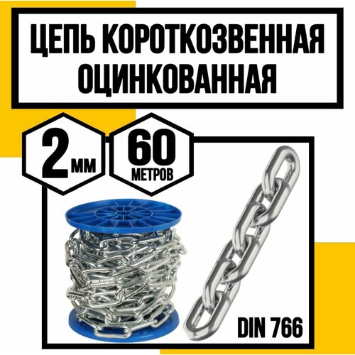 Цепь короткозвенная оцинк. DIN 766 2 мм 60м: сравнение цен, характеристики, фото, актуальное наличие и цены.