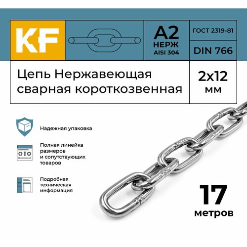 Купить Цепь Нержавеющая 2х12 мм DIN 766 А2 сварная короткозвенная 17 метров с доставкой по всей России. Цепь Нержавеющая 2х12 мм DIN 766 А2 сварная короткозвенная 17 метров: сравнение цен, характеристики, фото, актуальное наличие и цены.