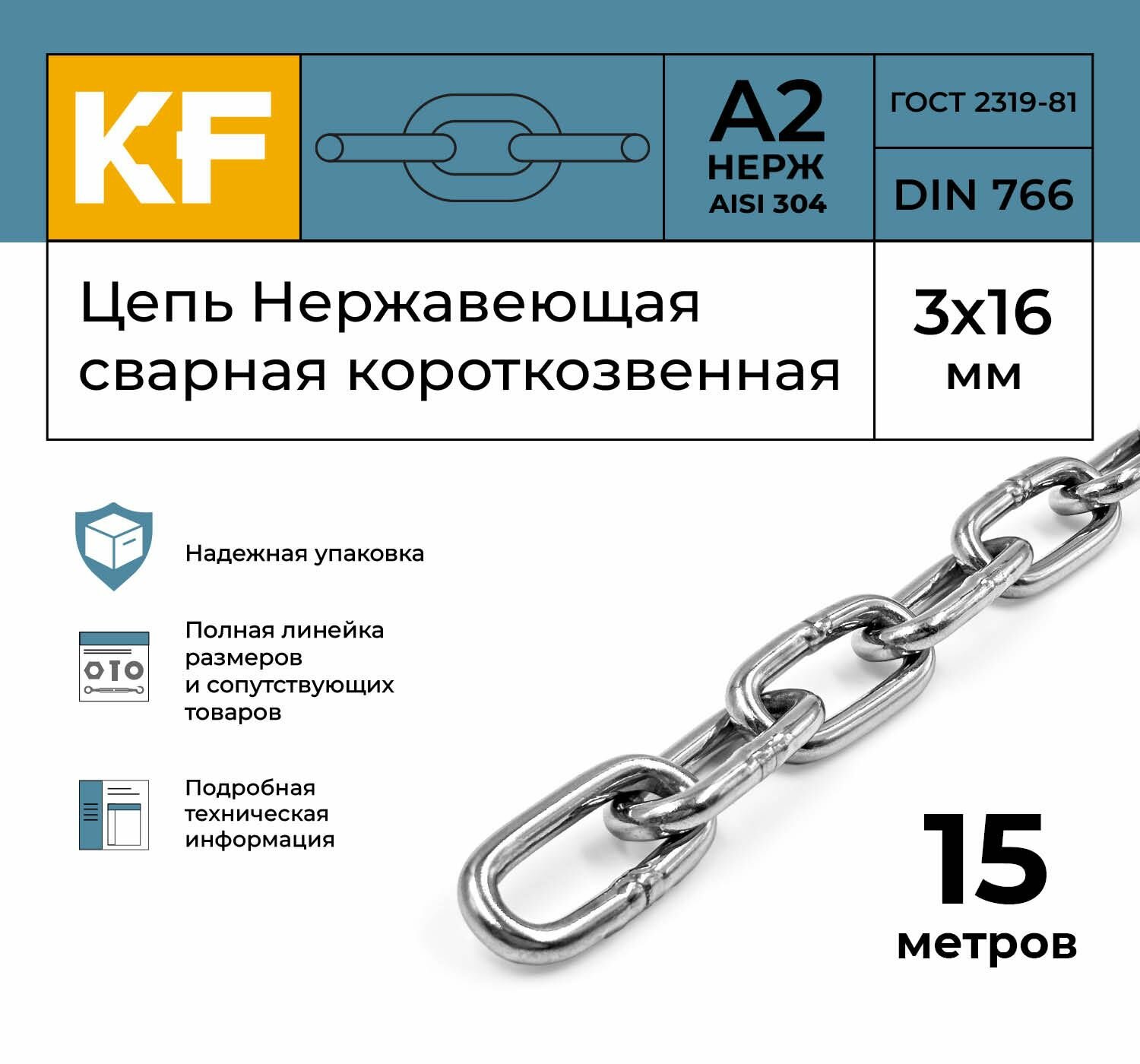 Купить Цепь Нержавеющая KREPFIELD 3х16 мм DIN 766 А2 сварная короткозвенная 15 метров с доставкой по всей России. Цепь Нержавеющая KREPFIELD 3х16 мм DIN 766 А2 сварная короткозвенная 15 метров: сравнение цен, характеристики, фото, актуальное наличие и цены.