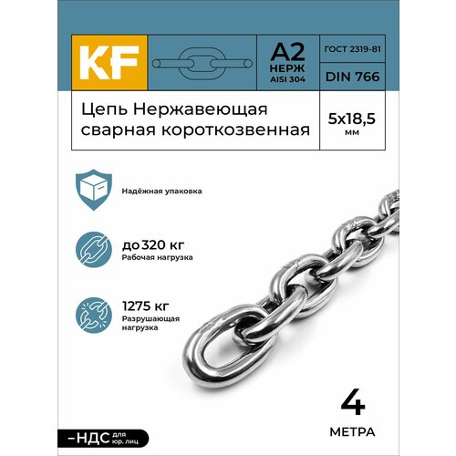 Купить Цепь Нержавеющая 5х18,5 мм DIN 766 А2 сварная короткозвенная 4 метра с доставкой по всей России. Цепь Нержавеющая 5х18,5 мм DIN 766 А2 сварная короткозвенная 4 метра: сравнение цен, характеристики, фото, актуальное наличие и цены.