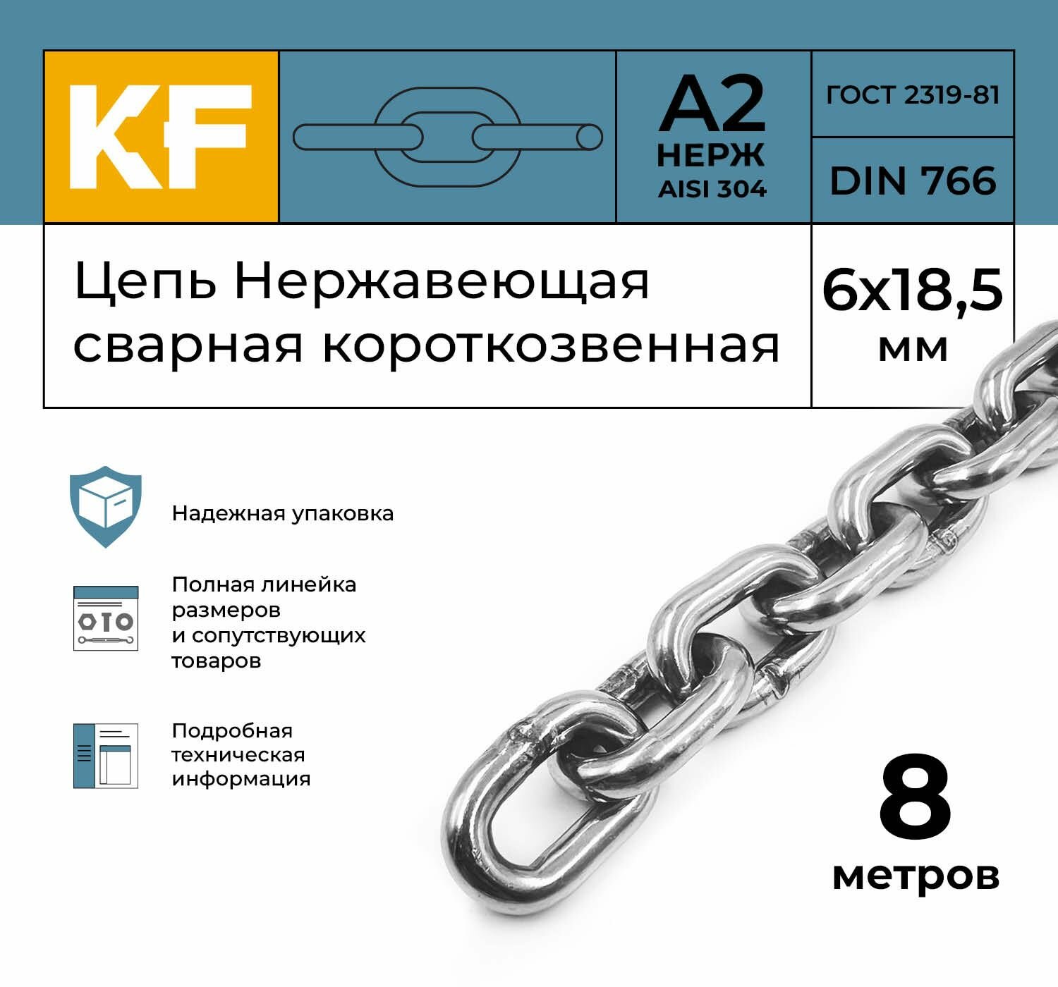 Купить Цепь Нержавеющая KREPFIELD 6х18,5 мм DIN 766 А2 сварная короткозвенная 8 метров с доставкой по всей России. Цепь Нержавеющая KREPFIELD 6х18,5 мм DIN 766 А2 сварная короткозвенная 8 метров: сравнение цен, характеристики, фото, актуальное наличие и цены.