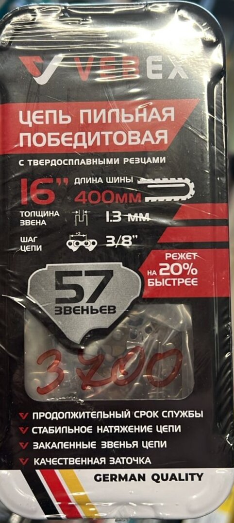 Цепь пильная победитовая с твердосплавными резцами (3/8, 1.3мм, 57зв), VEBEX: сравнение цен, характеристики, фото, актуальное наличие и цены.