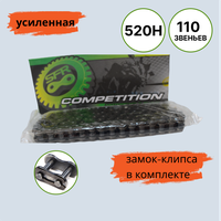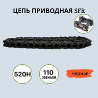 Цепь SFR 520H - 110L приводная, усиленная бессальниковая на 110 звеньев для мототехники. Материал цепи - сталь высокого качества. Замок – клипса в комплекте с цепью.