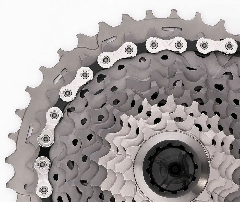 - Gold (Ti-n) / Jet Black - фирменное покрытие для улучшения производительности, увеличения долговечности и защиты от коррозии на внешних звеньях и заанодированые в черный внутренние зв