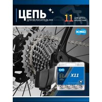 Цепь велосипедная KMC X11 Silver-Black, 11 скоростей, 114 звеньев, с замочком MissingLink 11R/CL555R в комплекте