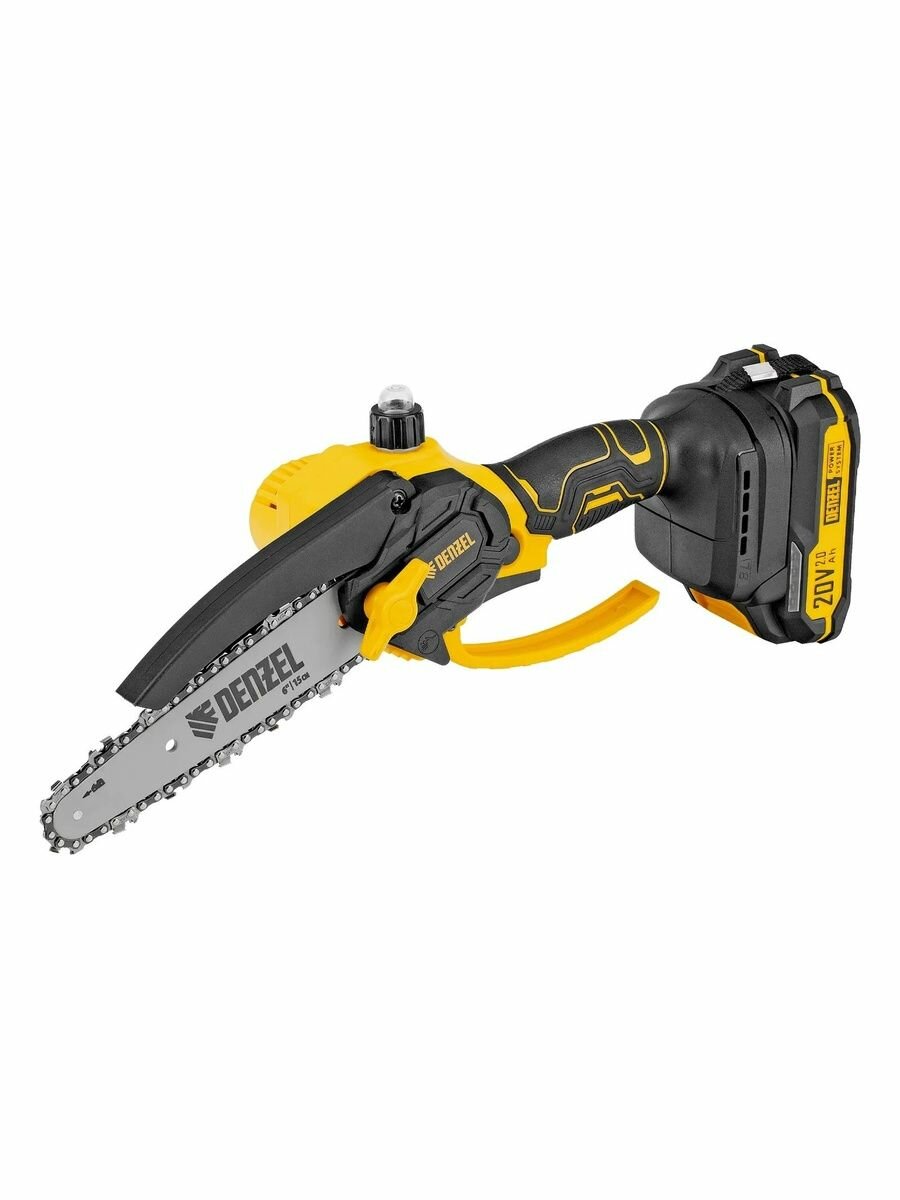Аккумуляторная цепная мини-пила Denzel CCS-150 58650 с бесщеточным двигателем и шиной длиной 150 мм используется для спиливания сучков и веток, пиления бруса толщиной до 150 мм, заготовки дров, а также выполнения прочих хозяйственных работ. Функционирует от аккумулятора Li-Ion с рабочим напряжением 20V. Бесщеточный двигатель обеспечивает длительную эффективную работу и не требует обслуживания. Аккумулятор Li-Ion без эффекта памяти допускает подзарядку без риска потери емкости. Инструмент пригодится для работы на садовом участке и в мастерской, также пилу удобно брать на выездные работы.