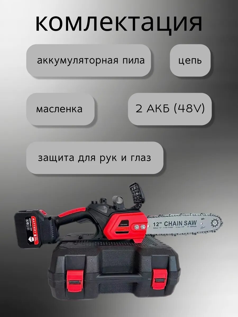 Эта современная бесщеточная электропила сочетает в себе мощность профессионального инструмента и удобство бытового применения. Благодаря литий-ионным аккумуляторам 48V 6000mAh она обеспечивает продолжительную работу без подзарядки, что делает ее идеальным выбором для заготовки дров, обрезки деревьев и других садовых работ.