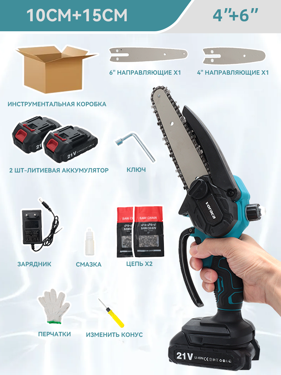 Цепная пила, 4+6″, с антивибрационной рукояткой и защитным кожухом, голубая: сравнение цен, характеристики, фото, актуальное наличие и цены.