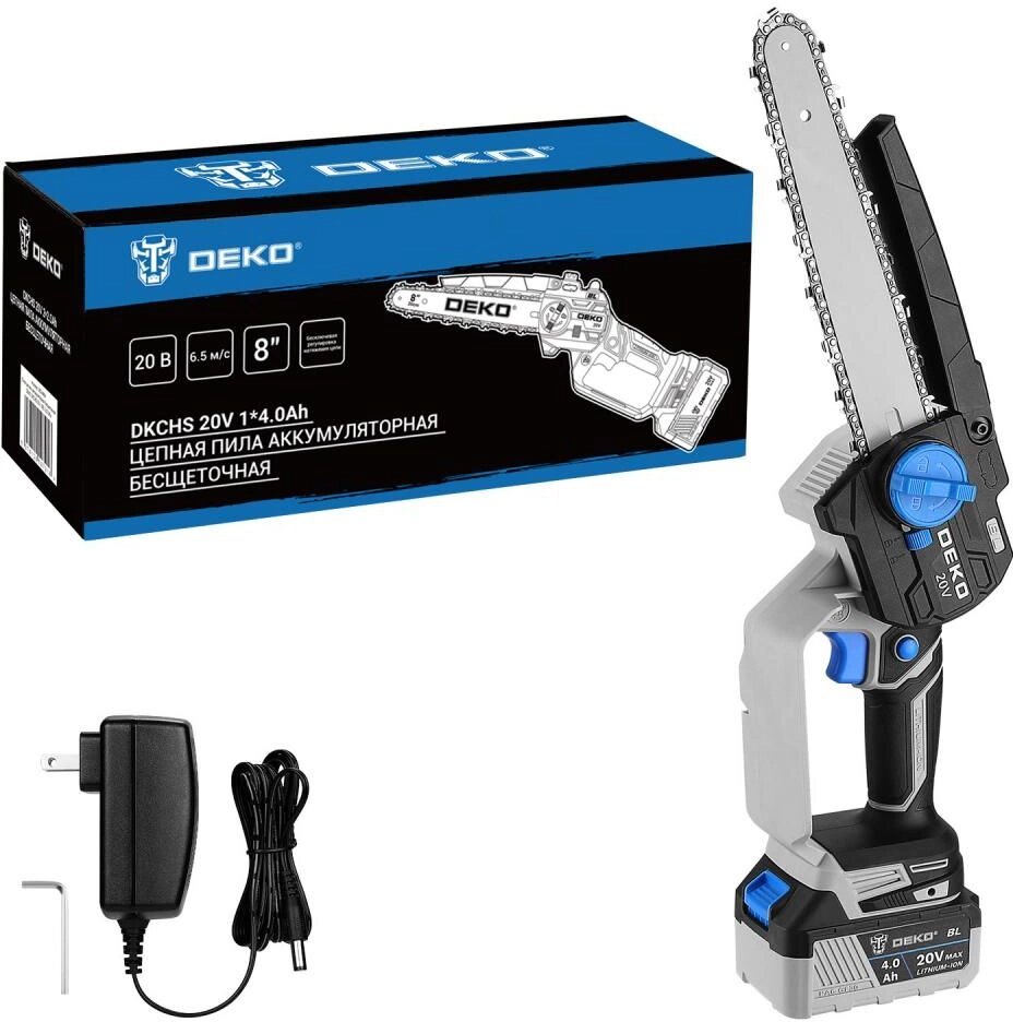 Цепная пила Deko DKCHS аккум. дл. шины:8″ (20cm) 1аккум. 4Ач ЗУ (063-4483-1): сравнение цен, характеристики, фото, актуальное наличие и цены.