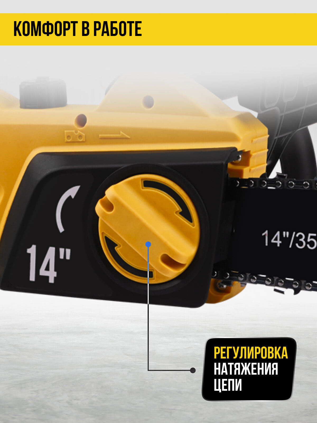 С максимальной длиной шины 35.0 см и шагом цепи 3/8 дюйма, данная модель обеспечивает широкий диапазон возможностей для распила различных видов древесины.