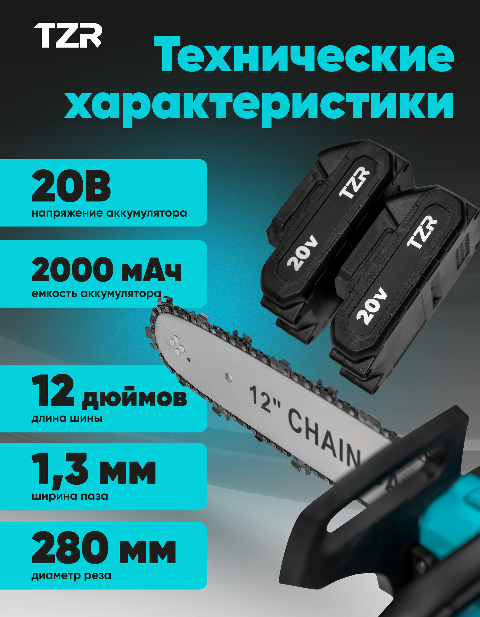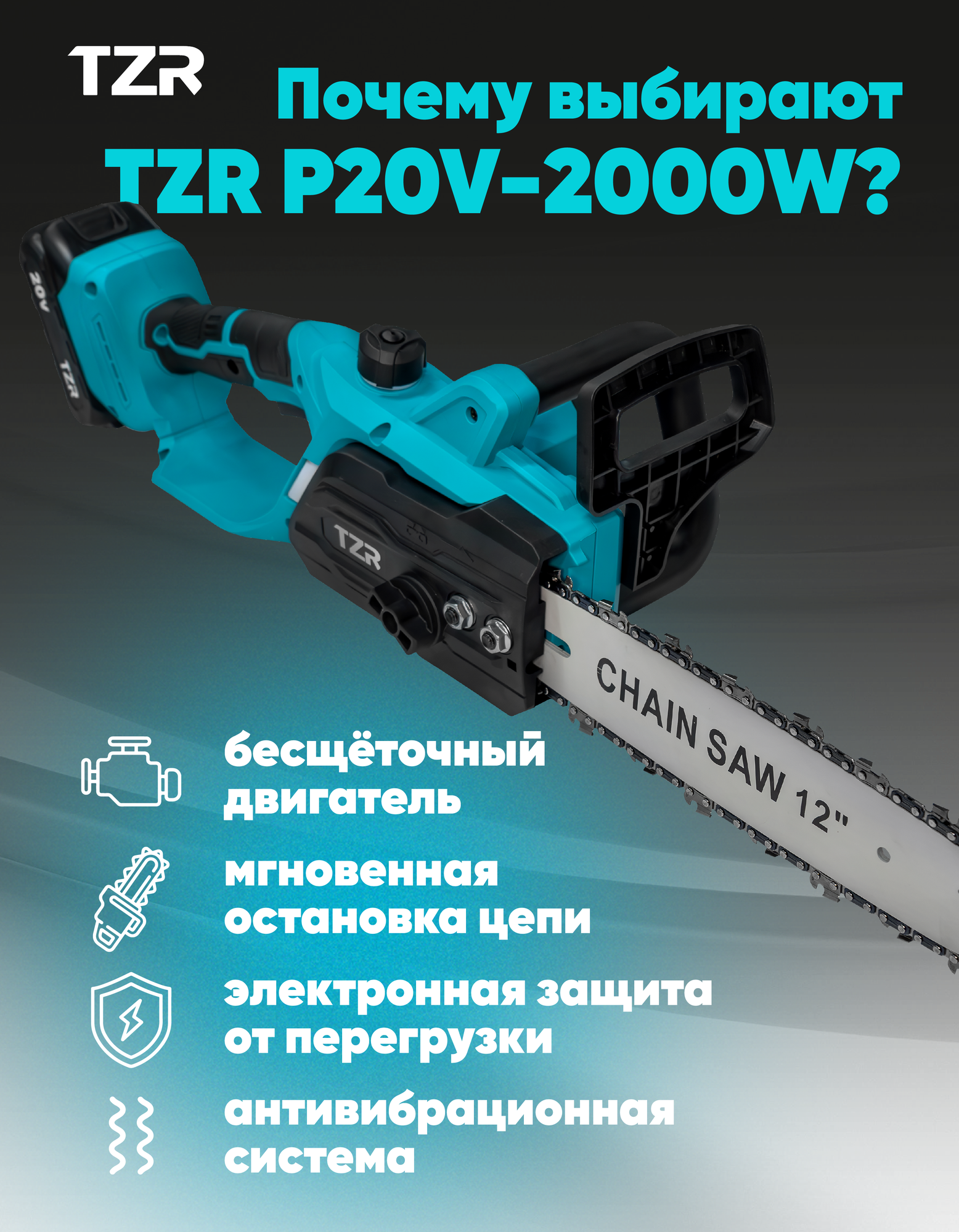 Цепная пила TZR «P20v», 20 В, 2000 W, аккумуляторная, безинструментальная натяжка цепи: сравнение цен, характеристики, фото, актуальное наличие и цены.