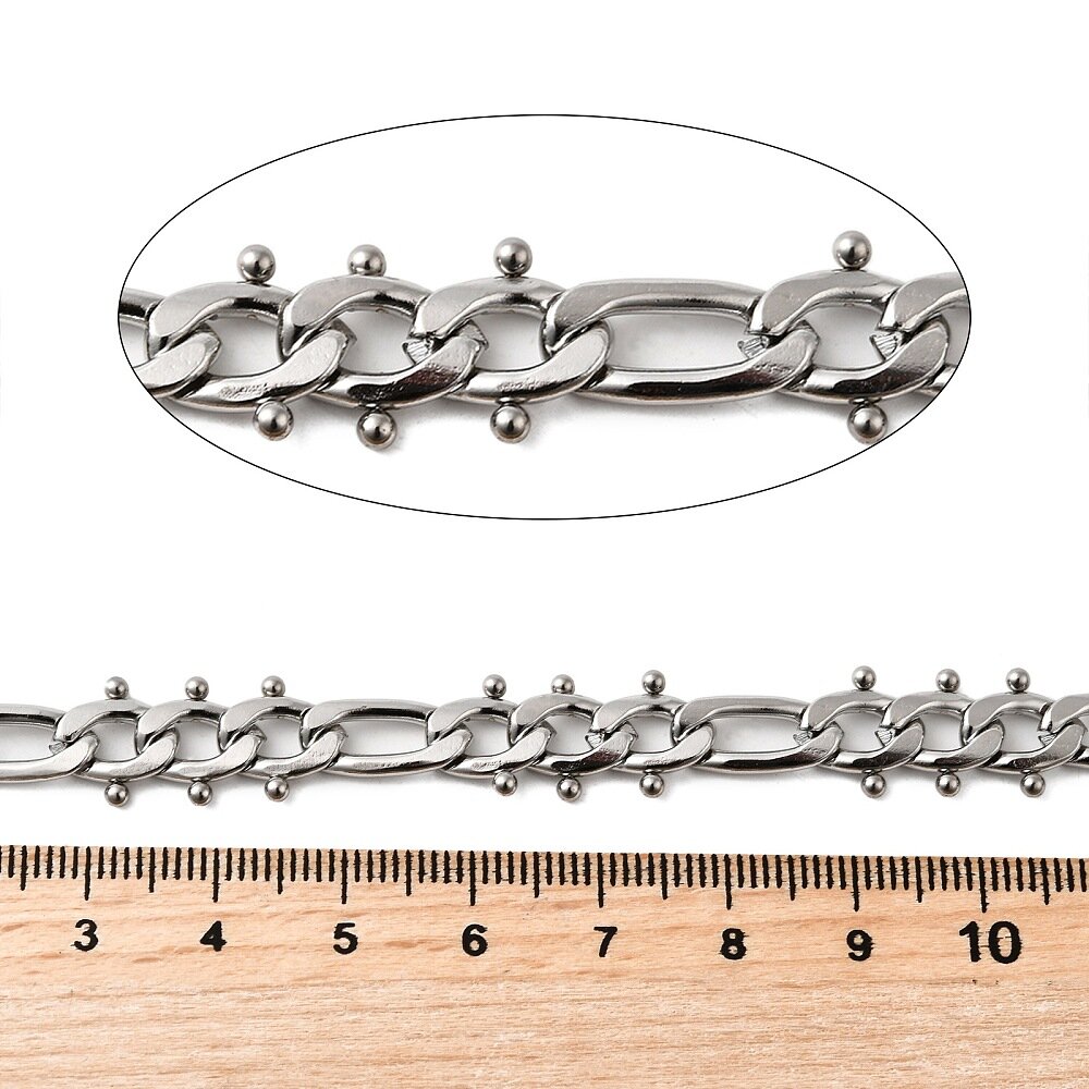 Купить Цепочка отрезная (без замка), 14х6.5 — 10х7мм, плетение Фигаро, с пупырышками, с алмазной гранью, базовый материал — нержавеющая сталь, без покрытия, 1 метр с доставкой по всей России.