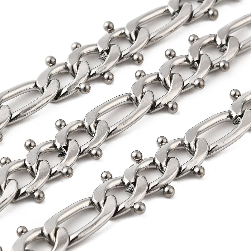 Цепочка отрезная (без замка), 14х6.5 — 10х7мм, плетение Фигаро, с пупырышками, с алмазной гранью, базовый материал — нержавеющая сталь, без покрытия, 1 метр: сравнение цен, характеристики, фото, актуальное наличие и цены.