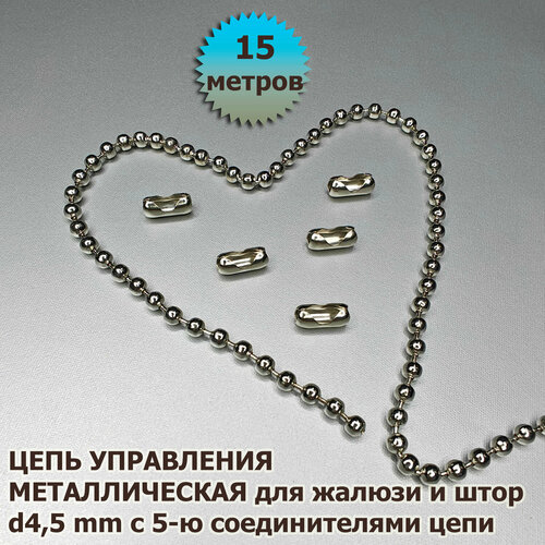 Купить Цепочка (цепь) для вертикальных жалюзи, римских и рулонных штор диаметр 4,5 мм 15 м. металлическая с 5-ю соединителями с доставкой по всей России. Цепочка (цепь) для вертикальных жалюзи, римских и рулонных штор диаметр 4,5 мм 15 м. металлическая с 5-ю соединителями: сравнение цен, характеристики, фото, актуальное наличие и цены.