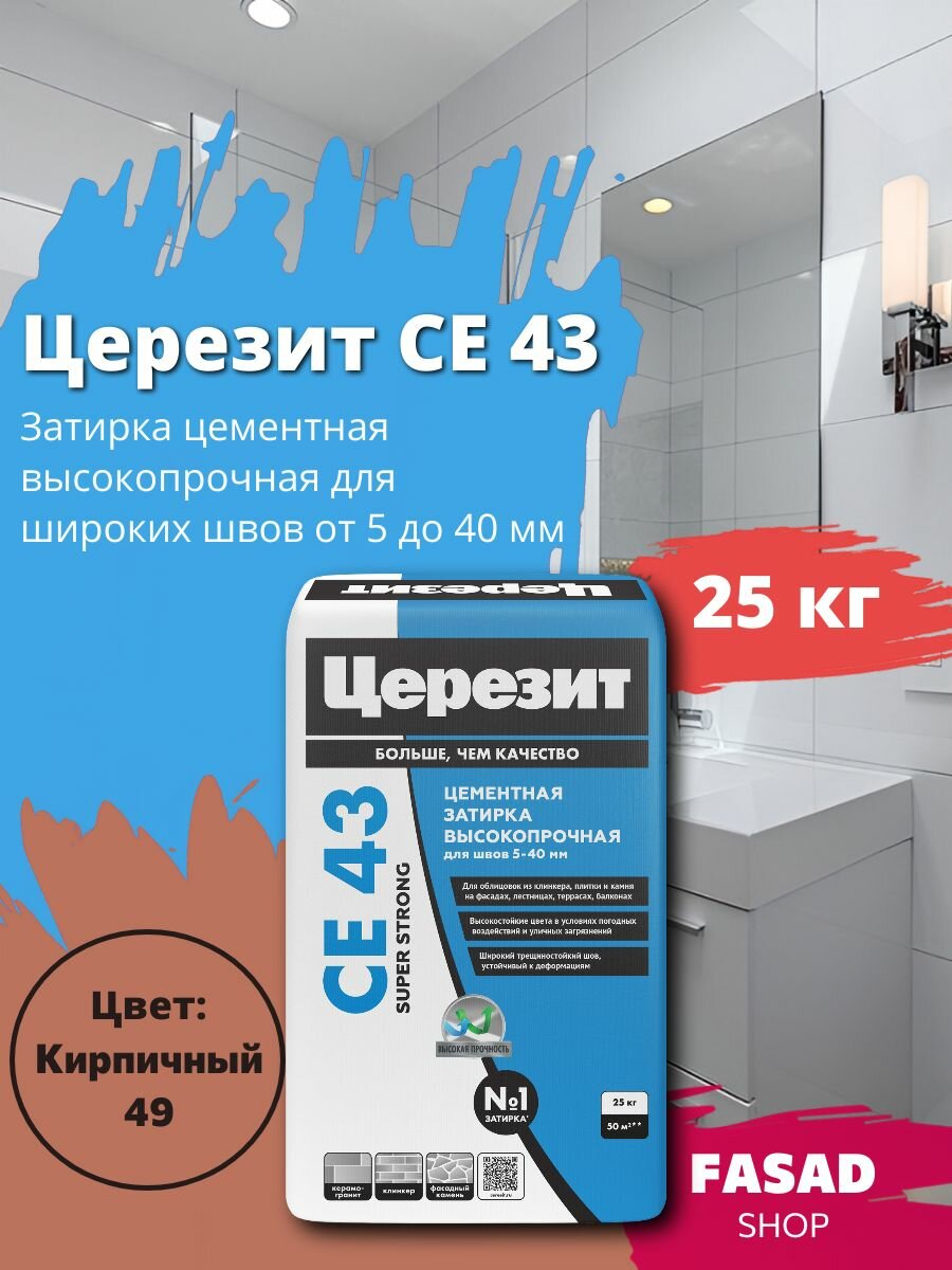 Купить Церезит CE 43 Затирка цементная высокопрочная, цвет Кирпичный, 25 кг с доставкой по всей России. Церезит CE 43 Затирка цементная высокопрочная, цвет Кирпичный, 25 кг: сравнение цен, характеристики, фото, актуальное наличие и цены.