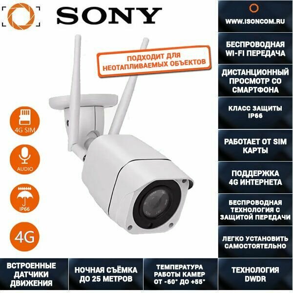 Купить Цифровая беспроводная IP WI-Fi 4G камера видеонаблюдения 5 мегапикселей ISON IP40SX-PRO с доставкой по всей России.