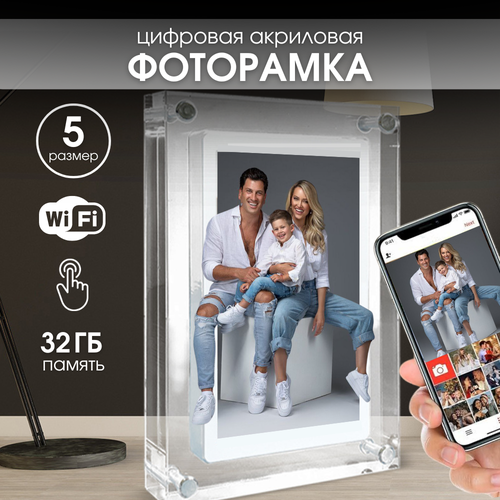 Цифровая фоторамка MEMORYFRAMES навсегда изменит то, как вы храните и демонстрируете любимые фото и видео. Будьте уверены, это лучший вариант из всех электронных фоторамок в продаже. Главная фишка нашей электро фоторамки это возможность подключения к сети wifi. Скачайте бесплатное мобильное приложение Frameo на телефон, введите код с интерактивной мультирамки и мгновенно отправляйте фотографии, независимо от того, где находитесь. Это идеальный вариант для небольших помещений или рабочего стола. Большим преимуществом является встроенная память объемом 32 Гб для хранения, есть USB выход под флешку, компьютер или внешний аккумулятор. Сенсорный Full HD IPS экран 5 дюймов с разрешением 1280*800 передаст все детали детских или свадебных фото. Операционная система Android поддерживает большинство форматов: mp4, avi, png, jpeg, для аудио mp3. Управляйте функциями, регулируйте яркость и громкость на сенсорном экране, накладывайте музыку на фотки, используйте как ночник, есть режим слайд шоу с выбором времени отображения, часы, погода. Импортируйте контент сразу на несколько рамок, делитесь кодом с близкими, чтобы они тоже могли отправлять свои фото. Музыкальная видеорамка полностью на русском языке и имеет автоповорот экрана. Забудьте о семейных фотоальбомах и неудобном поиске снимков. Электронная фоторамка позволит насладиться воспоминаниями, поделиться ими с семьей, создаст атмосферу любви, превратив фотографии в настоящее произведение искусства, а красивый эстетичный дизайн впишется в любой интерьер и станет его украшением. Cоздавайте необычный живой альбом на экране декоративной акриловой фоторамки. Разнообразие функций делает видео рамку с часами настолько универсальной, что она станет подарком и мужчине, и женщине. Новогодние праздники, свадьба детей, рождение малыша или самый обычный день останутся в сердце дольше, благодаря этой электронике. Сделана из прозрачного акрила с белыми вставками внутри. Упакована в оригинальную подарочную коробку