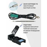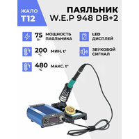 Паяльная станция-паяльник 948DB+ II - многофункциональный строительный инструмент для пайки, ремонта электроники, мобильных телефонов, бамперов автомобилей, термоусадочных работ, ручной установки радиоэлементов, монтажа, демонтажа электронных компонентов BGA, SMD, PLCC, и др. Электрический паяльник с керамическим нагревателем мощностью 75 Вт (t 200 – 480°С) подойдет как для домашнего, так и для профессионального использования. Широкий диапазон рабочих температур позволят применять данную паяльную станцию в самых разнообразных условиях. Паяльник обеспечивает быстрый и надежный нагрев. Благодаря подставке для электропаяльника и губке можно осуществлять безопасную работу без соприкосновения паяльника со столом и случайных ожогов. Набор для пайки имеет керамический нагреватель для разогрева паяльника, можно использовать удобные сменные жала-картриджи T12. Электрический паяльник имеет пластиковую рукоятку со специальным прорезиненным покрытием для удобной работы, чтобы паяльник не выскальзывал из рук. Станция обеспечивает возможность регулировки и поддержки заданной температуры, терморегуляция. Керамический нагревательный элемент цифрового паяльника позволяет избежать поражения электронных компонентов напряжением, которое могло бы образоваться на жале при использовании обычного (металлического) нагревательного элемента. Удобная конструкция позволяет поменять, в случае необходимости, жало без проблем и лишних усилий. Есть LED дисплей индикации температуры паяльника, что позволяет достичь наименьшей погрешности при работе. Станция паяльная имеет 3 хранилища для температуры пайки CH1/CH2/CH3. Паяльник W.E.P и аксессуары для пайки в нашем магазине - это всё, что нужно, чтобы правильно паять. Ознакомиться с ассортиментом того, что нужно для пайки, Вы можете на витрине нашего магазина.