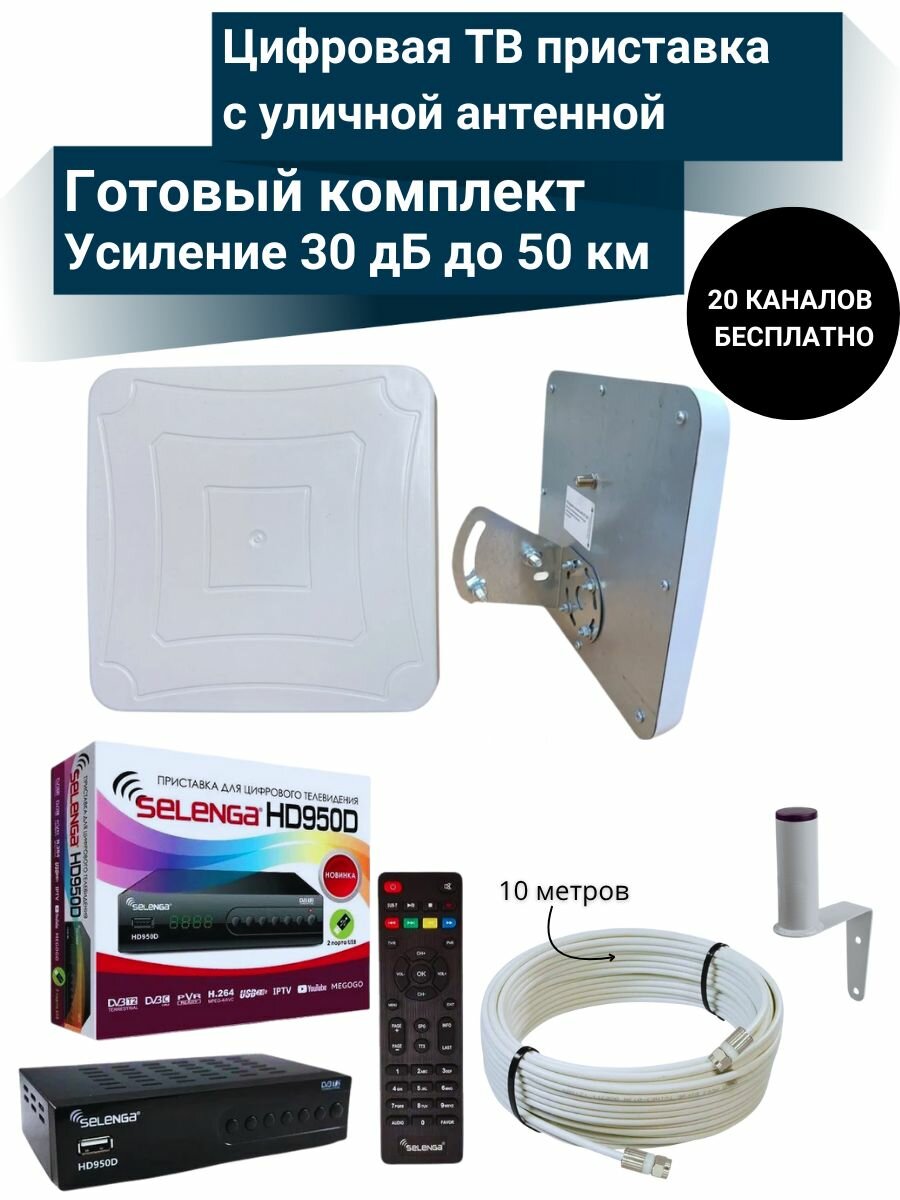 Купить Цифровая ТВ приставка HD 950D DVB-T2 с уличной активной антенной до 50км с доставкой по всей России.