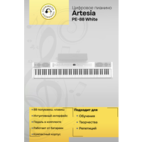 Artesia PE-88 - портативный аранжировщик, укомплектованный множеством функций в изящном и легком корпусе. Инструмент имеет 88 полноразмерных клавиш с динамическим откликом, которые создают впечатление игры на акустическом пианино. Artesia PE-88 обладает более чем 130 тембрами и сэмплами, а также встроенным регулятором высоты тона и функцией записи на две дорожки.