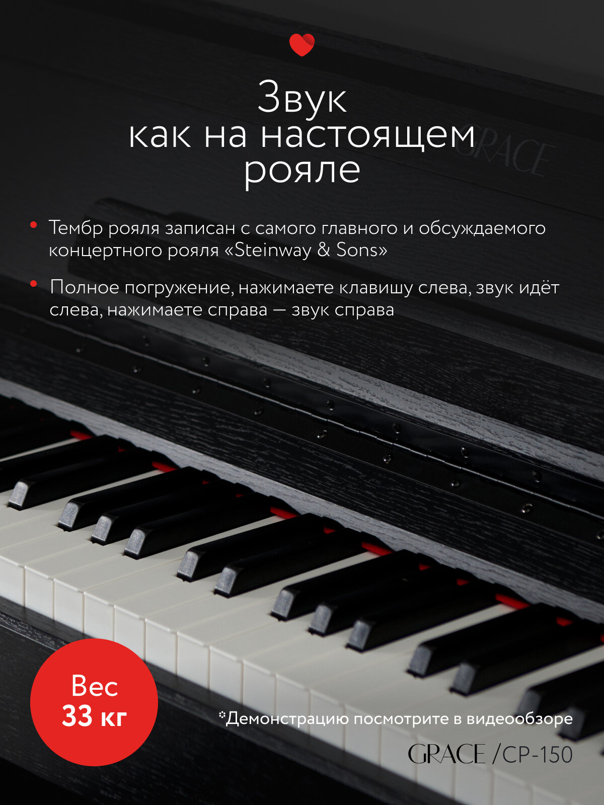 Внимание! Версии "черный" и "black" одинаковые. Цифровое пианино Grace CP-150 : превосходное качество звука и удобство использования Мощный процессор и акустическая система Grace CP-150 оснащено мощным восьми-ядерным процессором, который обеспечивает превосходное качество звука. Акустическая система с мощностью 2х10 Ватт обеспечивает чистое и насыщенное звучание, позволяя вам наслаждаться игрой на пианино в любом помещении. Молоточковая клавиатура и 10 тембров Grace CP-150 оборудовано молоточковой клавиатурой, которая обеспечивает реалистичное ощущение игры на настоящем пианино. 10 предустановленных тембров позволяют вам выбрать наиболее подходящий для вашего стиля игры. Полифония 189 голосов Цифровое пианино Grace CP-150 предлагает полифонию 189 голосов, что обеспечивает богатое и насыщенное звучание при игре. Выбирая цифровое пианино Grace CP-150 , вы получаете качественный и удобный инструмент для обучения, репетиций и выступлений.