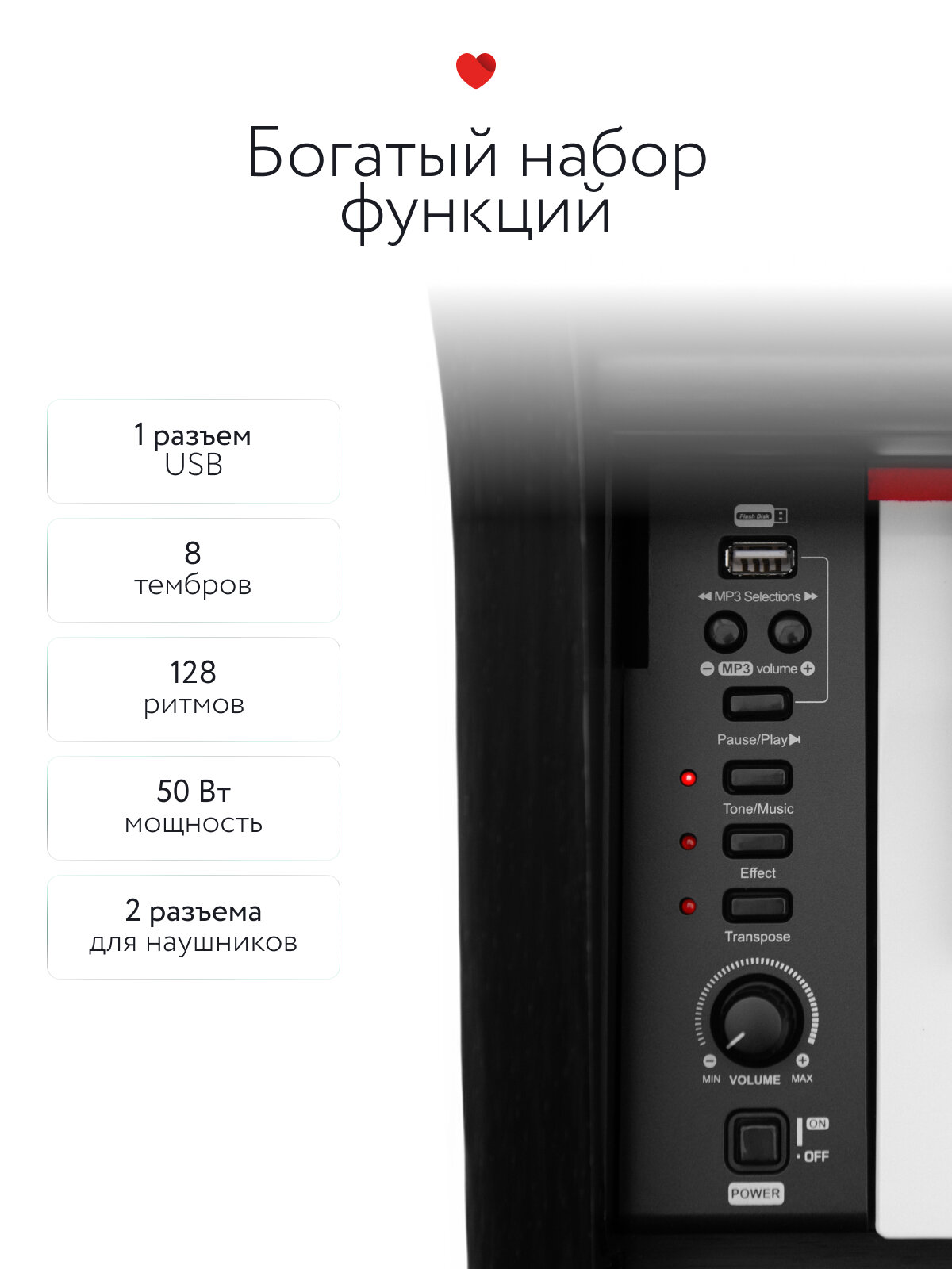 Grace CP-200 имеет множество функций. Он позволяет записывать и наслаивать две дорожки в одну композицию, а также транспонировать и тонко настраивать тон звучания клавиш. Функция воспроизведения MP3 файлов позволяет учиться под любимую музыку. Инструмент также оборудован двумя разъёмами для наушников, что позволяет играть, не беспокоя окружающих. Grace CP-200 имеет возможность подключения к компьютеру через USB-интерфейс. При использовании программного обеспечения на компьютере вы получаете множество дополнительных возможностей, включая запись музыки, воспроизведение аккомпанемента и использование плагинов. Инструмент отличается богатством функциональности и гибкостью настроек, позволяя музыкантам выразить своё творчество и достичь высокого уровня музыкального исполнения.