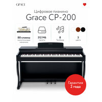 Grace CP-200 воспроизводит богатый тембр легендарного концертного рояля Steinway. Каждая клавиша инструмента содержит пять звуковых дорожек, которые активируются в зависимости от силы нажатия, создавая звуковой отклик, схожий с игрой на настоящем рояле. Инструмент обладает 88 взвешенными клавишами и молоточковой механикой, достоверно передающими ощущение игры на рояле. Помимо этого, Grace CP-200 обладает множеством функций и возможностей для дополнительного варьирования звука и выразительности игры. В нем встроены 31 демонстрационная песня, 8 высококачественных тембров, 128 ритмов с возможностью настройки темпа, функция "игра аккордами одним пальцем", а также возможность синхронизации игры с ритмами. Пользователю доступны настройка динамического отклика при нажатии клавиш, встроенный метроном для обучения сохранению ритма, а также специальные встроенные эффекты Trill, Suspension и DSP.