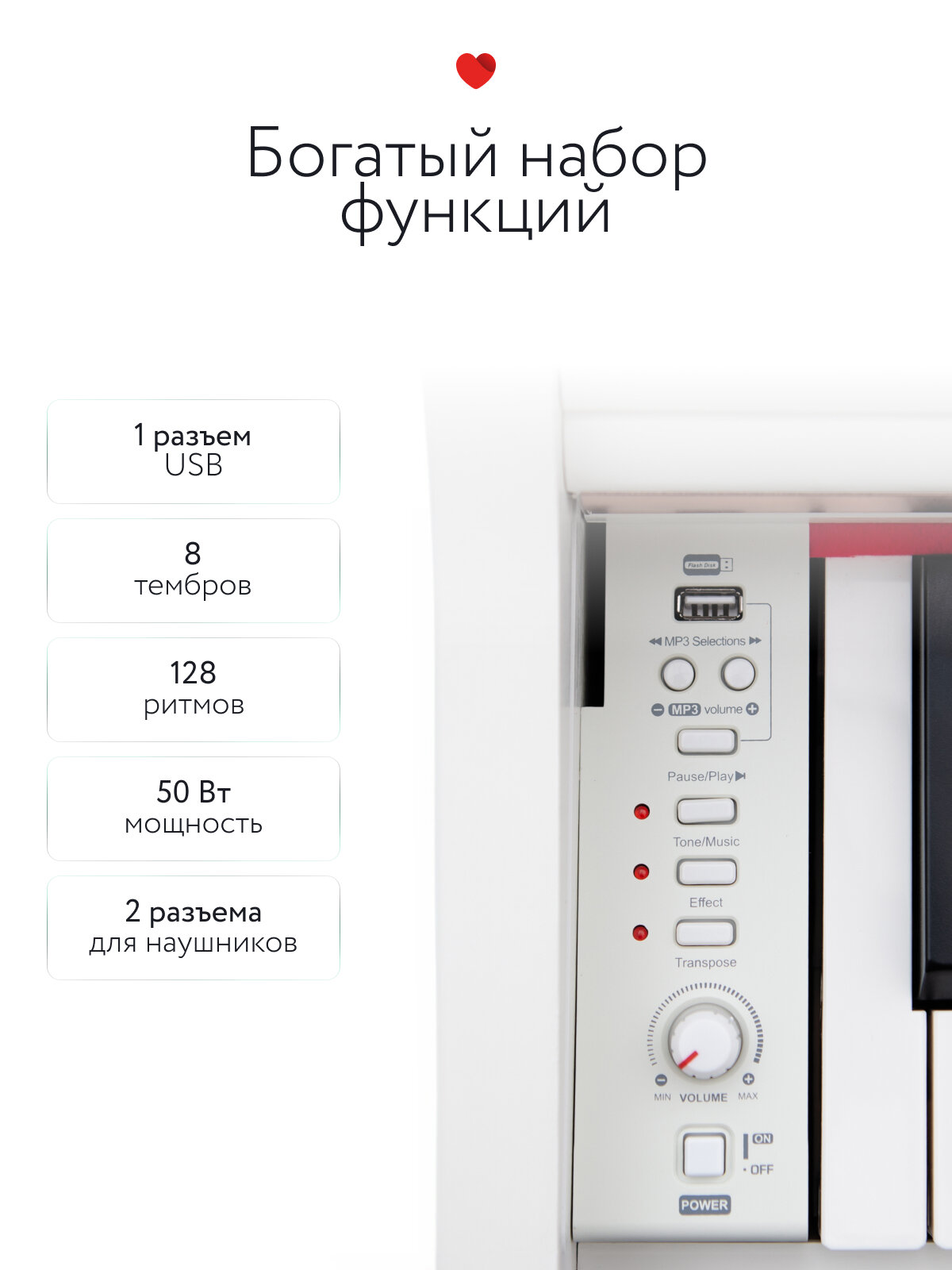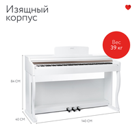 - 88 взвешенных клавиш с разной развесовкой и с молоточковой механикой, повторяющие клавиатуру рояля;