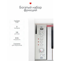 - Пианино имеет возможность подключения к компьютеру через USB-интерфейс. Используя ПО на компьютере Вы получаете огромное количество дополнительных возможностей, включая запись музыки, проигрывание аккомпанемента и использования плагинов. Также вы можете сохранять и загружать настройки для устройства.