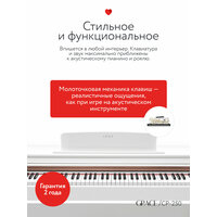 запись песен, крышка клавиатуры, метроном, молоточковая механика, разделение клавиатуры, транспонирование, чувствительность клавиатуры к касанию, Встроенная акустическая система, Встроенные педали, Чувствительные к скорости нажатия клавиши