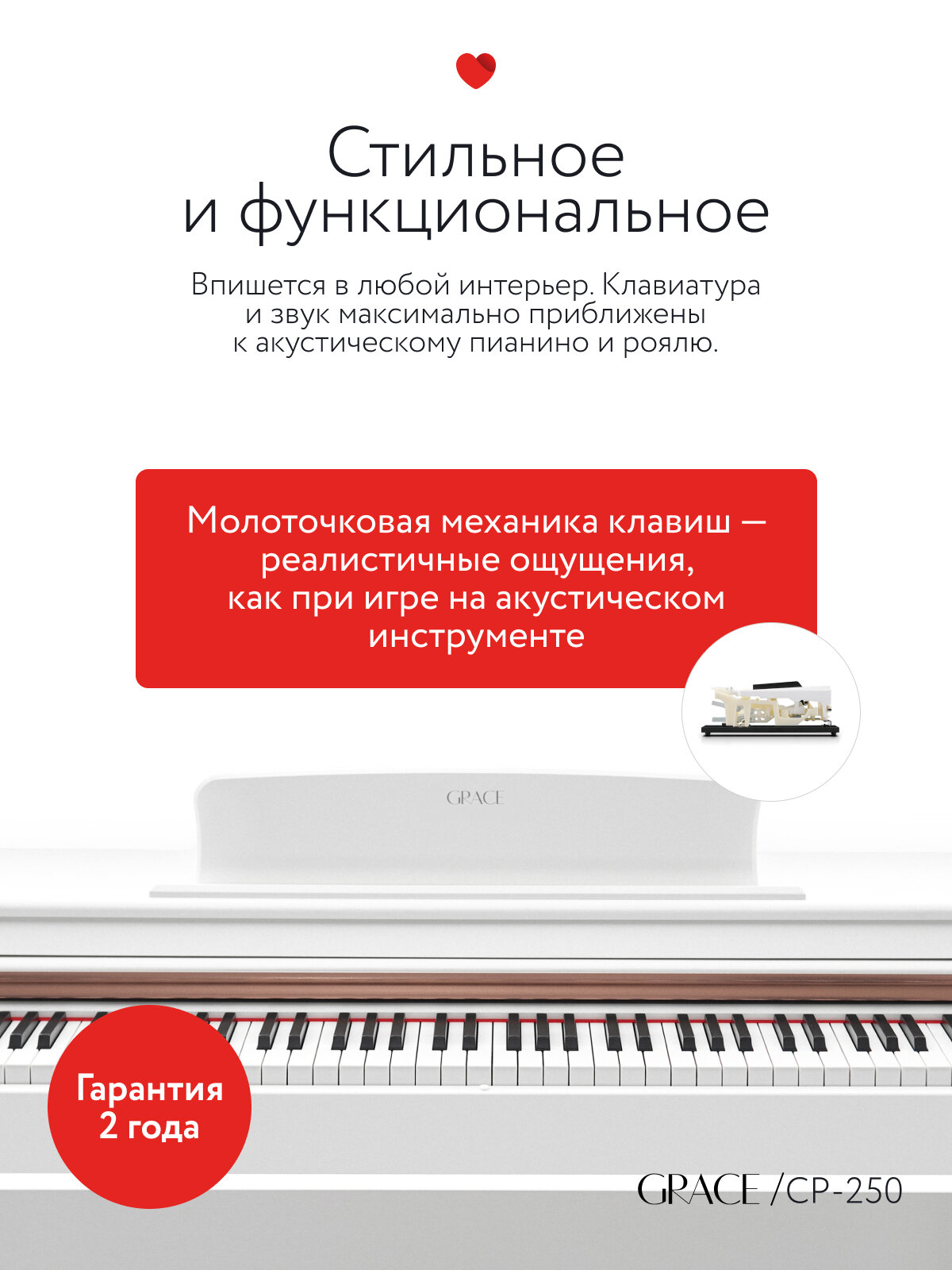 Купить Цифровое пианино Grace CP-250 WH — белый, наушники в подарок с доставкой по всей России. Цифровое пианино Grace CP-250 WH — белый, наушники в подарок: сравнение цен, характеристики, фото, актуальное наличие и цены.