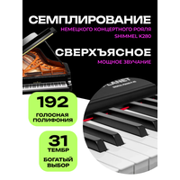 Полновзвешенная молоточковая механика клавиатуры. 88 клавиш с аутентичным ощущением при игре. Европейская технология звучания. Семплирование тембра акустического рояля Schimmel K280. Наличие bluetooth. Идеальный вариант, как для начинающего пианиста, так и для исполнителя, который оттачивает свои навыки и готовится к выступлениям.