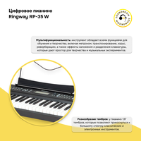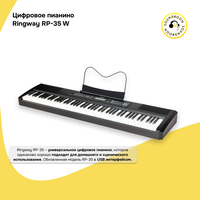 Ringway RP-35 – универсальное цифровое пианино, которое одинаково хорошо подходит для домашнего и сценического использования. Обновленная модель RP-30 с USB интерфейсом. В черном и белом исполнении.