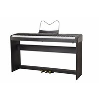 Ringway RP-35 B Цифровое пианиноRingway RP-35 – универсальное цифровое пианино, которое одинаково хорошо подходит для домашнего и сценического использования. Обновленная модель RP-30 с USB интерфейсом. В черном и белом исполнении. Данная модель имеет 137 тембров, пианино позволяет записывать и проигрывать композиции, включая автоаккомпанемент и музыку, которую сыграл исполнитель. Функция OTS - автоматически выбирает тембр, подходящий для выбранного стиля. Функция «Панорама» - позволяет назначить стерео позицию каждого сегмента аранжировки для создания различных композиций. Одним из достоинств этого инструмента является то, что он не перегружен функциями, а оснащен только самыми необходимыми – транспонирование, разделение клавиатуры для возможности занятий вместе с преподавателем в одной тональности и наложение двух тембров для творчества. Автоаккомпанемент содержит 100 различных стилей, в музыкальной библиотеке записано 10 готовых демо-композиций, пользователь может сохранить в памяти инструмента до двух мелодий с одним аккомпанементом! Стойка S-25 - В комплекте .
