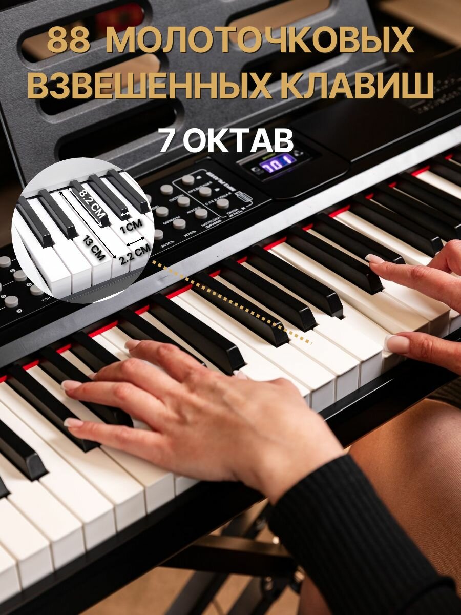 - 88 молоточковых клавиш с реалистичной отдачей
